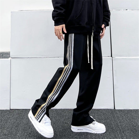 Men's Side Striped Zipper Drawstring Fall Casual Pants
