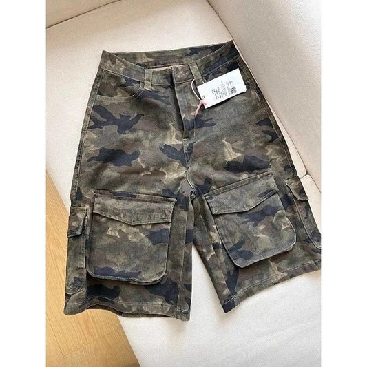 Womens Summer American-Style High-Street Vintage Camo Denim Shorts